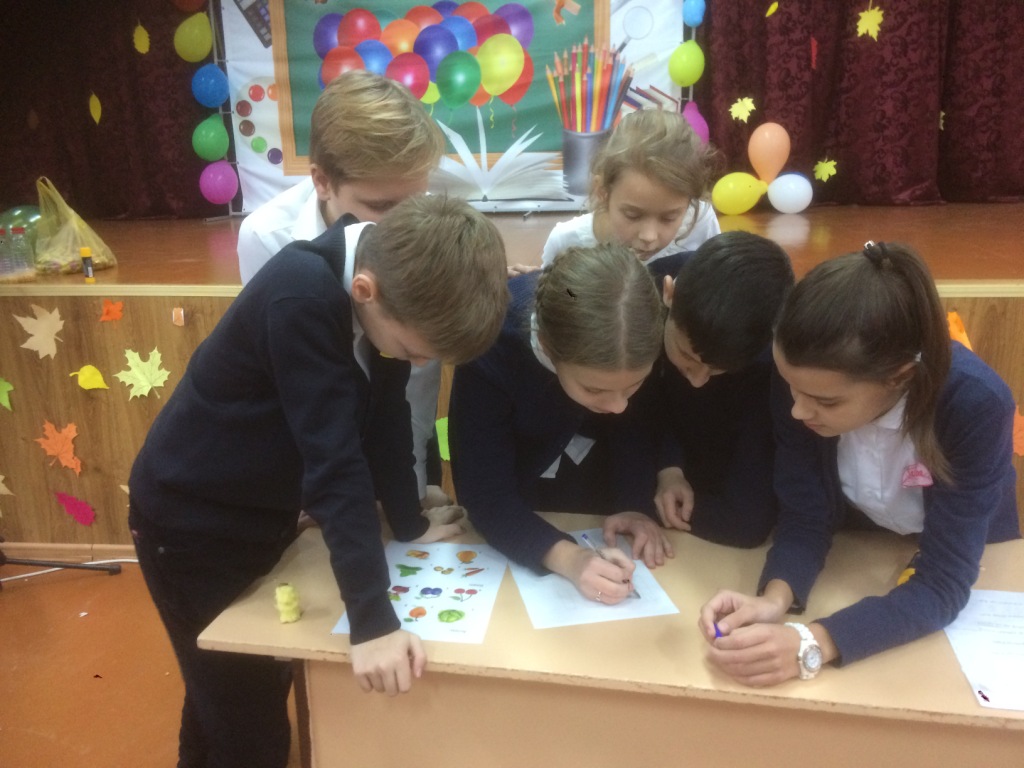 Ребята участвовали в интересных конкурсах, пели, рассказывали стихи и сочиняли рассказы про осень на английском языке.