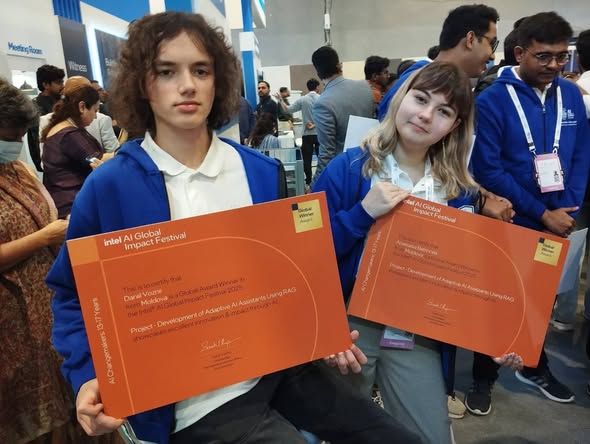 После победы на международном конкурсе Intel AI Global Impact Festival Анастасия Бэтрынча и Даниил Возный, участники проекта "Tekwill in Every School" и ученики теоретической лицея имени "Николае Милеску Спэтару", сейчас находятся в Индии, где принимают участие в международных мероприятиях, посвященных искусственному интеллекту и инновациям.